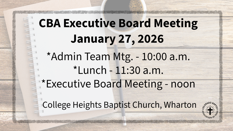 - FBC Eagle Lake, Pastor Joshua Turpin and wife, will be resigning and moving to a new ministry opportunity in North Carolina. Pray for them and their next chapter of ministry there. Lift up FBC Eagle Lake as they enter into a time of pastoral leadership transition as well.